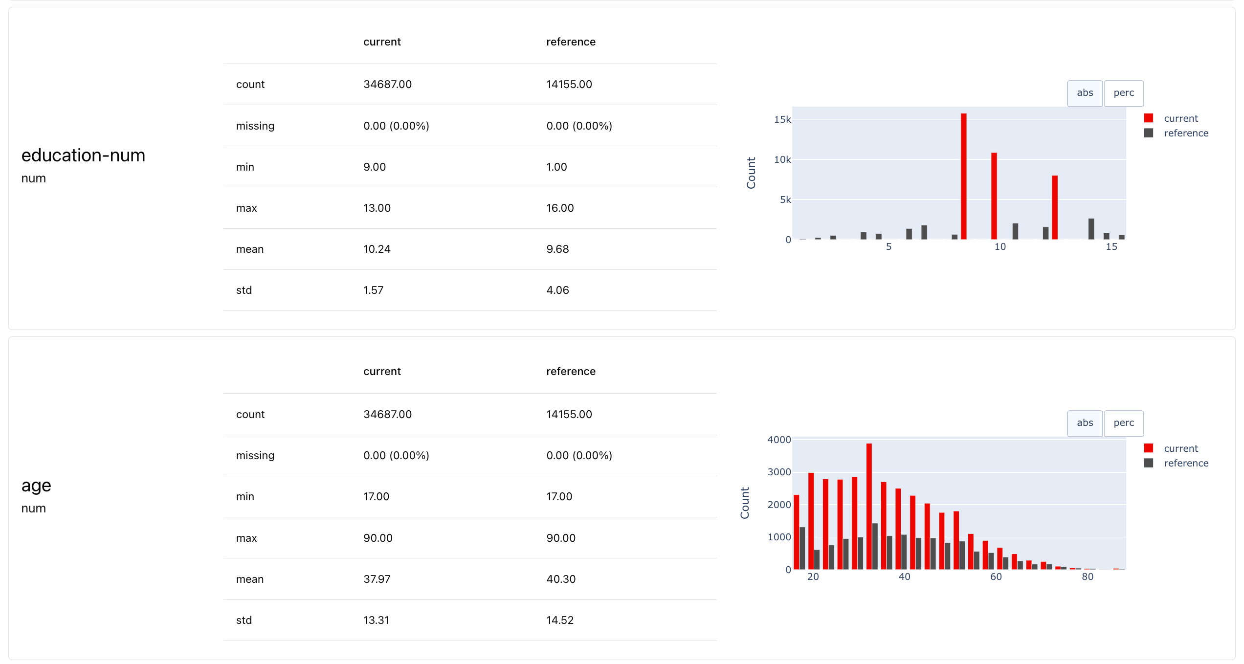 current) dataset. Optionally, you can prepare a second (reference) dataset that will be used during the evaluation. Both must have identical structures.