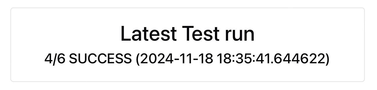 statuses: List[statuses]Available: TestStatus.ERROR, TestStatus.FAIL, TestStatus.SUCCESS(default), TestStatus.WARNING, TestStatus.SKIPPED | Status filters select Tests with specific outcomes. (E.g., choose the FAIL status to display a counter for failed Tests). Without a filter, the Panel shows Tests SUCCESS. |