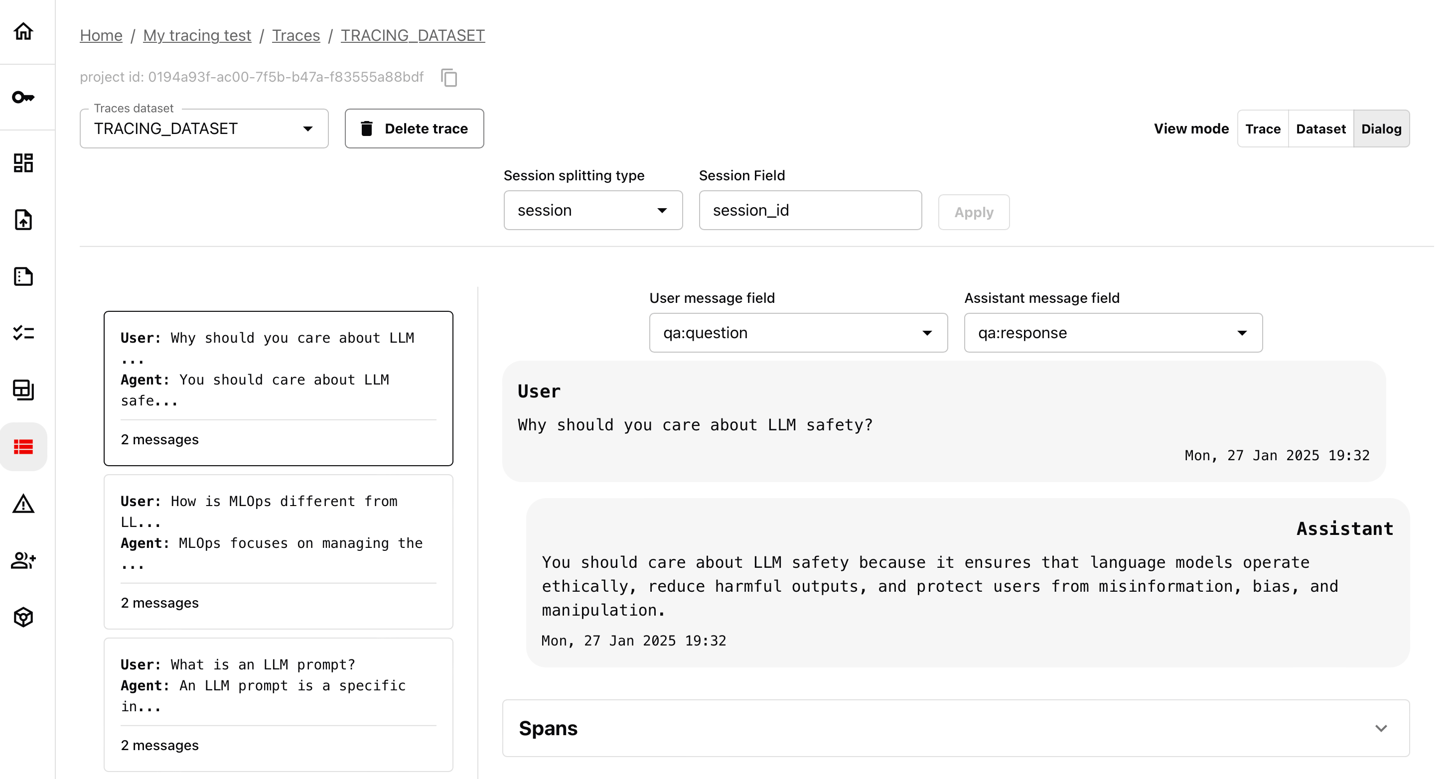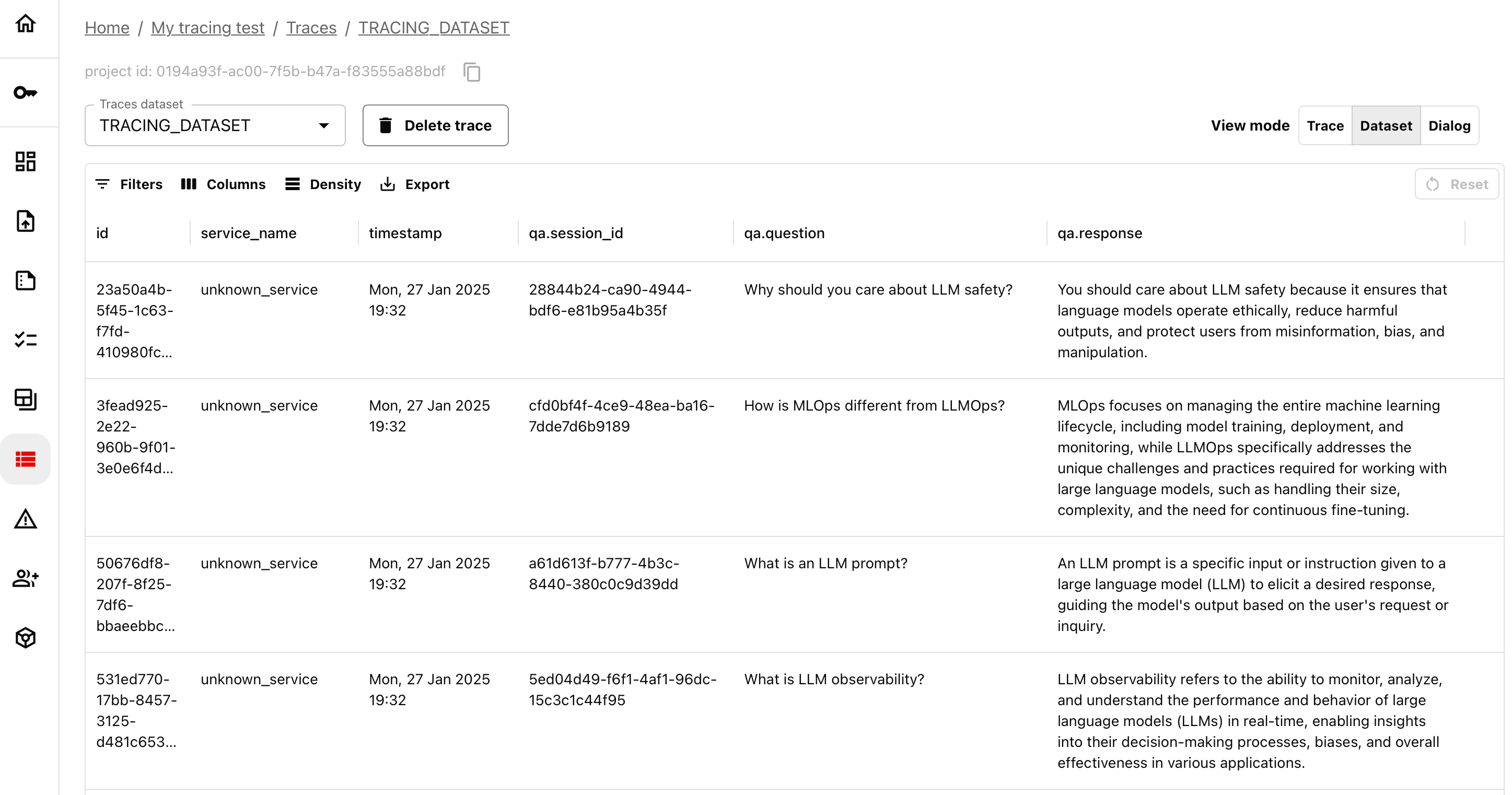 Tracing lets you instrument your AI application to collect data for evaluation and analysis. It captures detailed records of how your LLM app operates, including inputs, outputs and any intermediate steps and events (e.g., function calls). You define what to include. Evidently provides multiple ways to explore tracing data.- Trace view