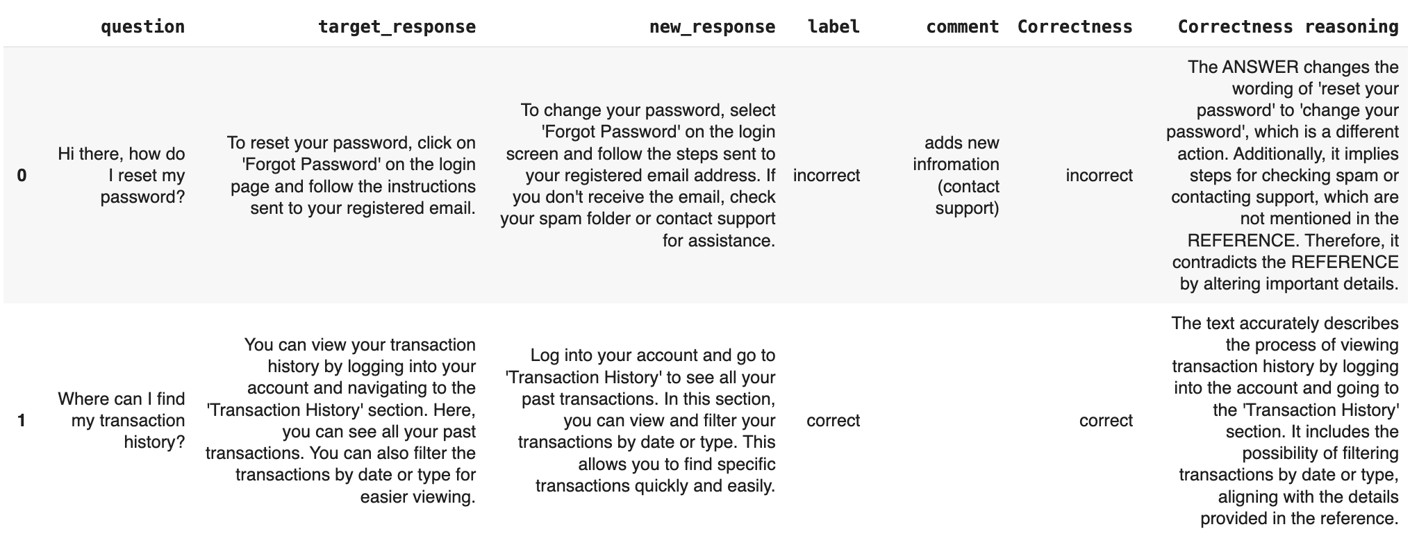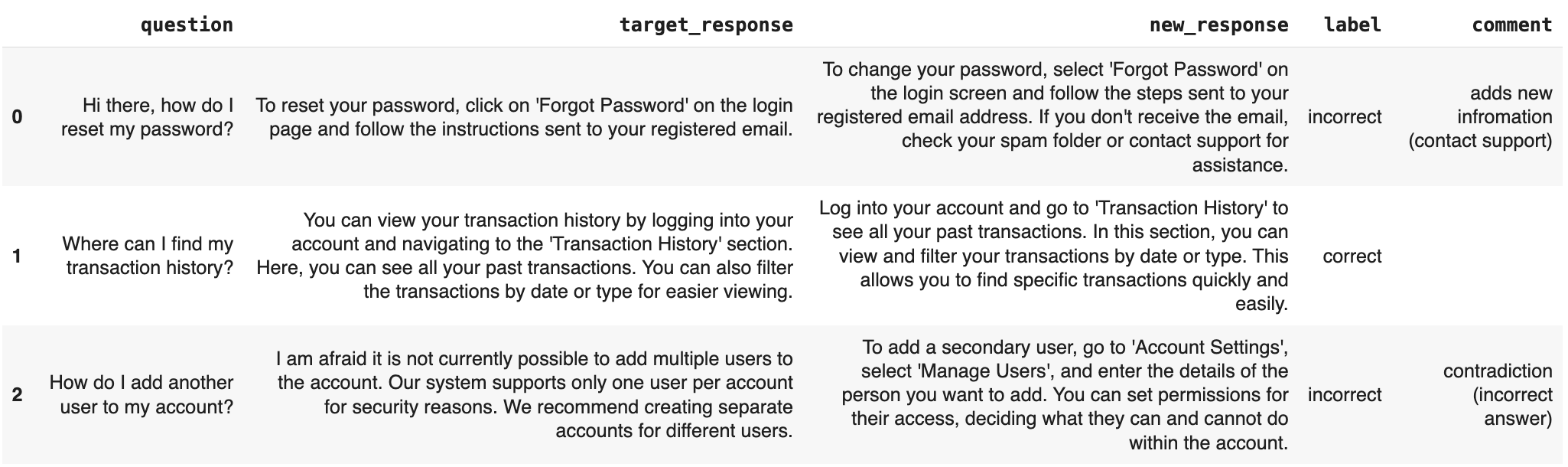 - Manual labels with explanation. Labels that say if response is correct or not.