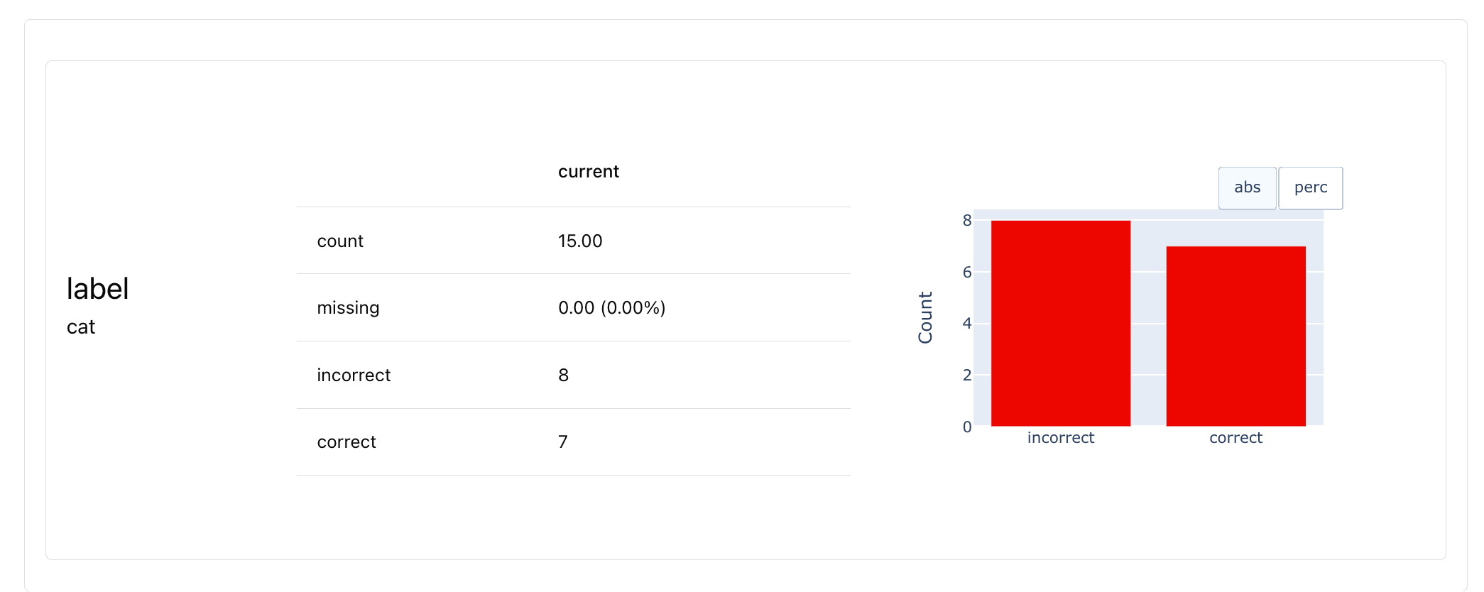 This part is a bit meta: we’re going to evaluate the quality of our LLM evaluator itself! We can treat it as a simple binary classification problem. Data definition. To evaluate the classification quality, we need to map the structure of the dataset accordingly first. The column with the manual label is the “target”, and the LLM-judge response is the “prediction”:Pos_label refers to the class that is treated as the target (“what we want to predict better”) for metrics like precision, recall, F1-score.ClassificationPreset() that combines several classification metrics: