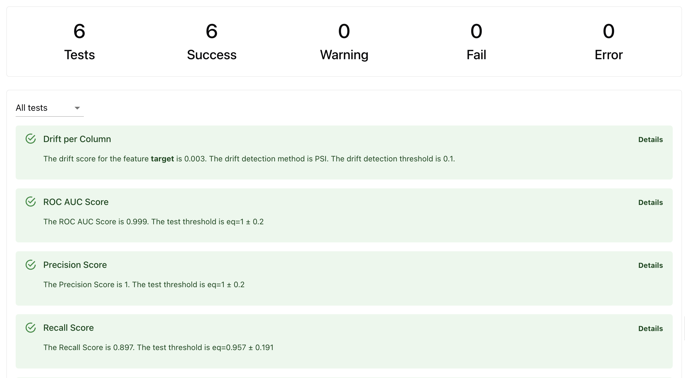 ValueDrift("target")to evaluate if there is a statistical distribution shift in the model target (concept drift).