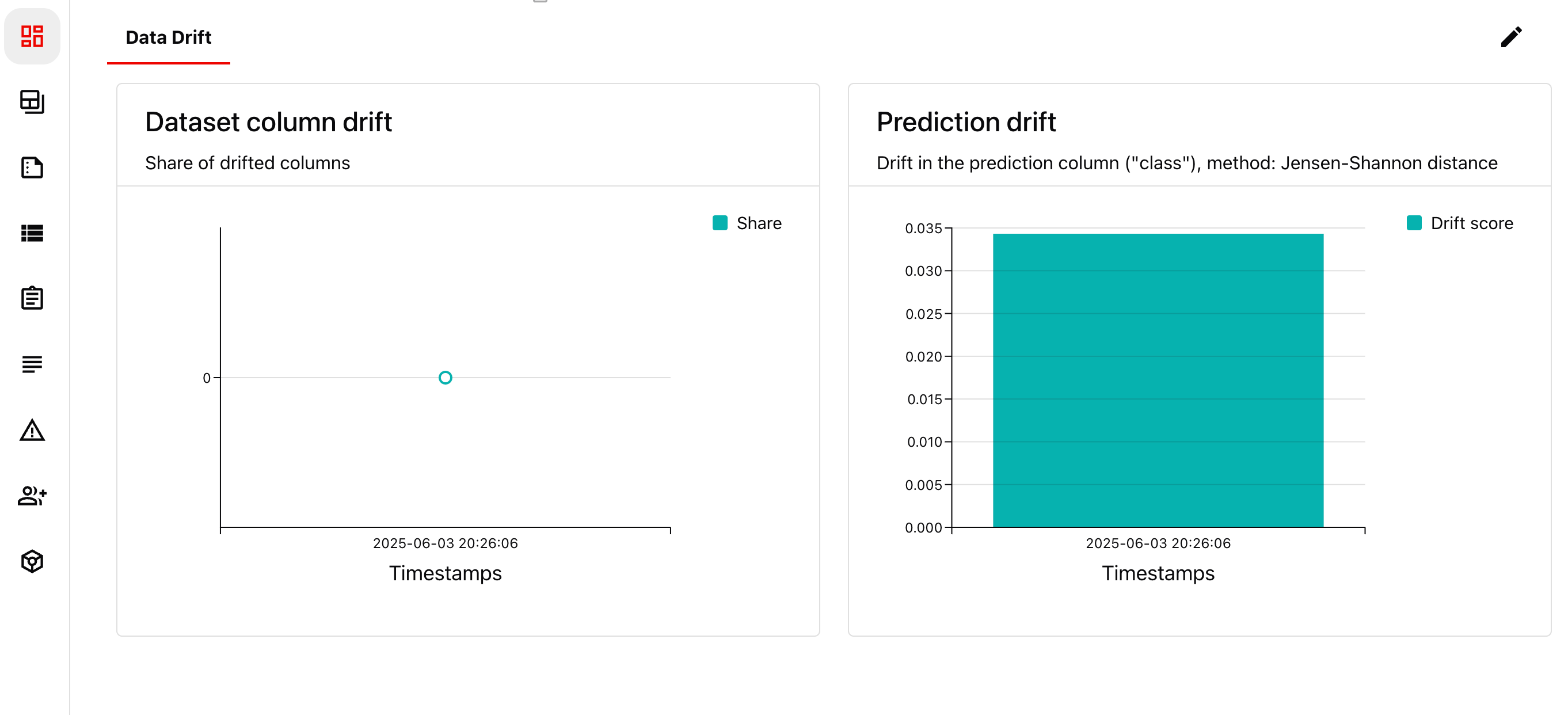 As you run repeated evals, you may want to track the results in time by creating a Dashboard. Evidently lets you configure the dashboard in the UI or using dashboards-as-code.